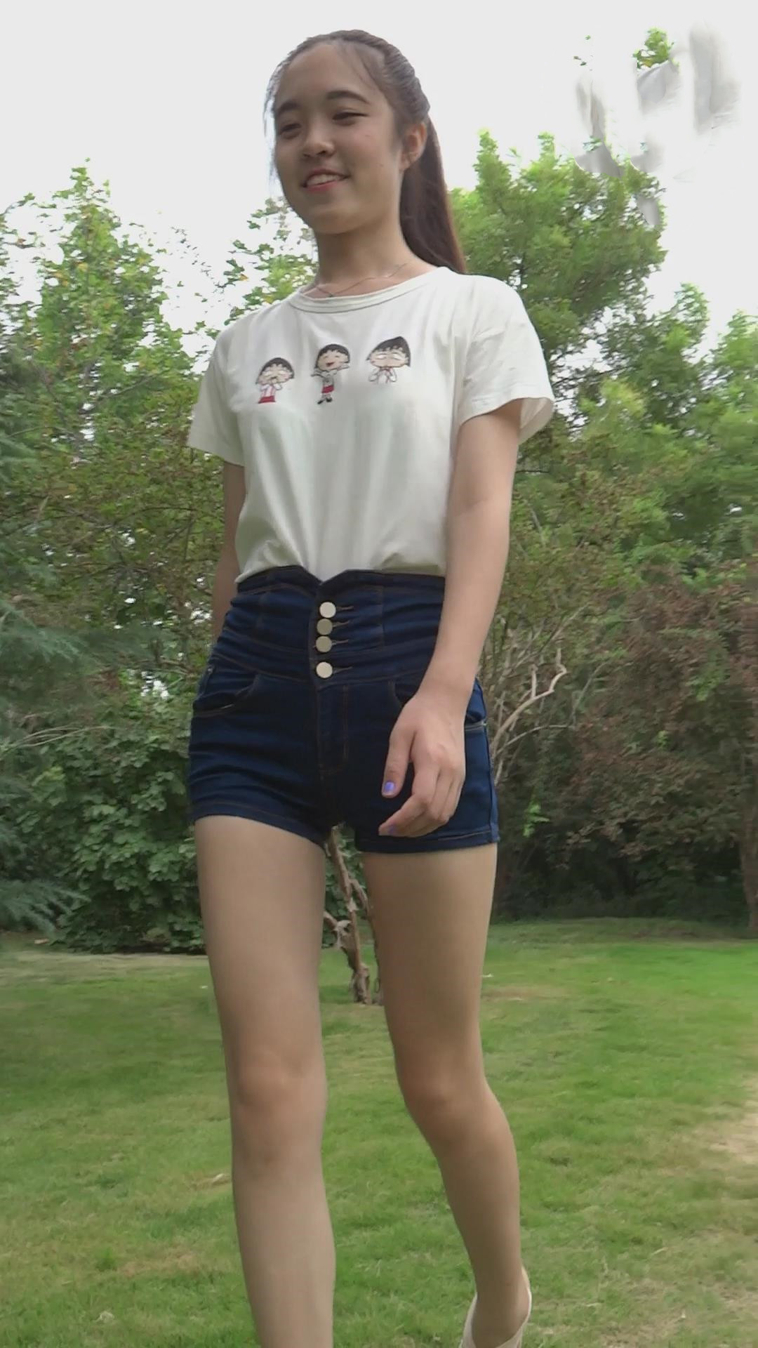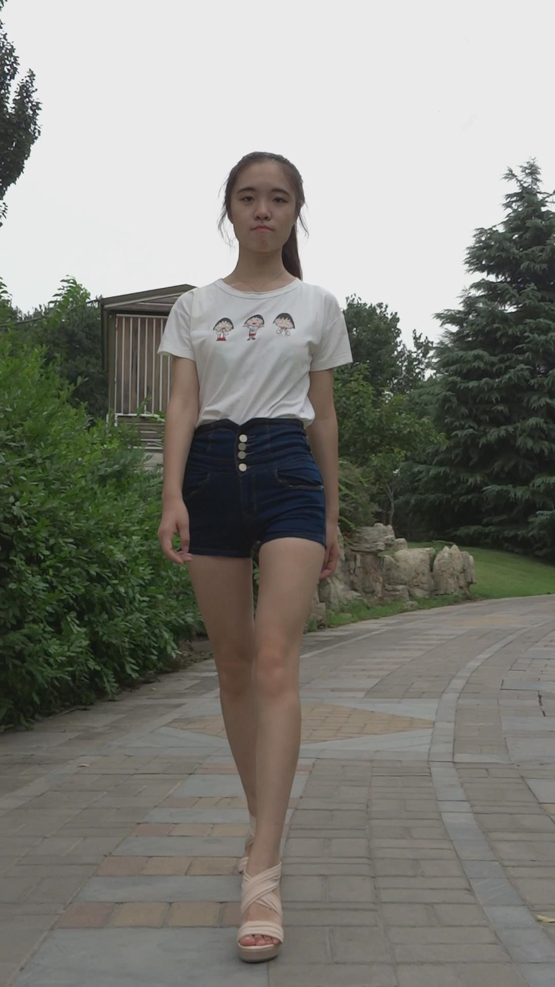 高挑长腿甜美妹子穿着坡高跟凉鞋公园模拍 编号6883