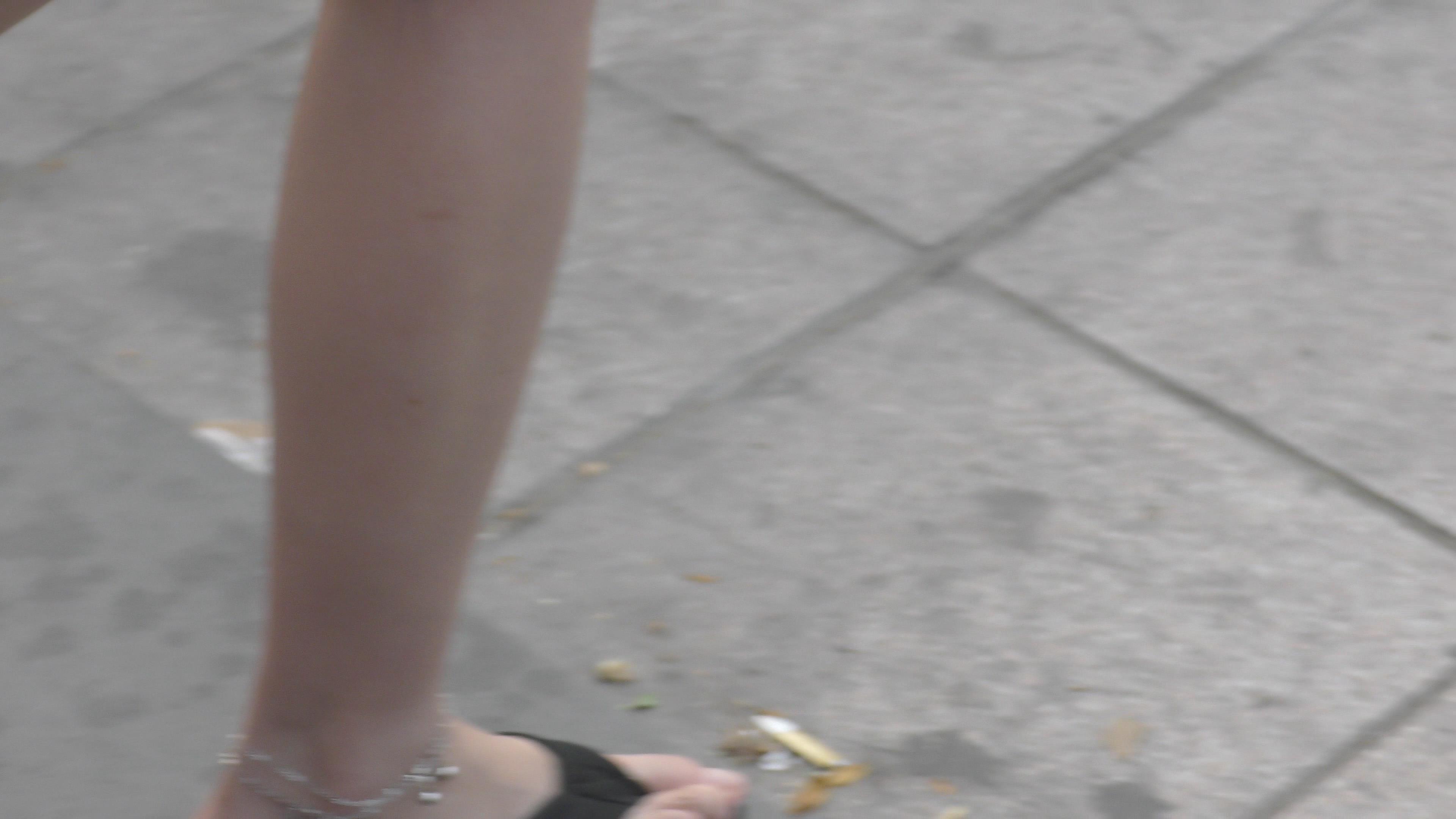 4k-等公交的黑色人字拖素脚丫 编号6620