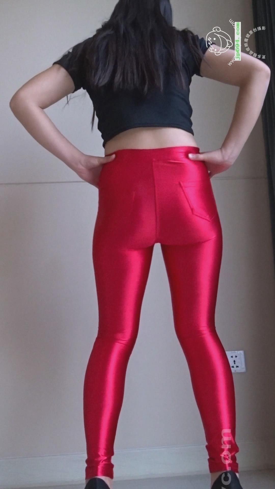 超诱惑的紧身丰臀亮光红裤模拍,各种姿势诱惑 编号6893
