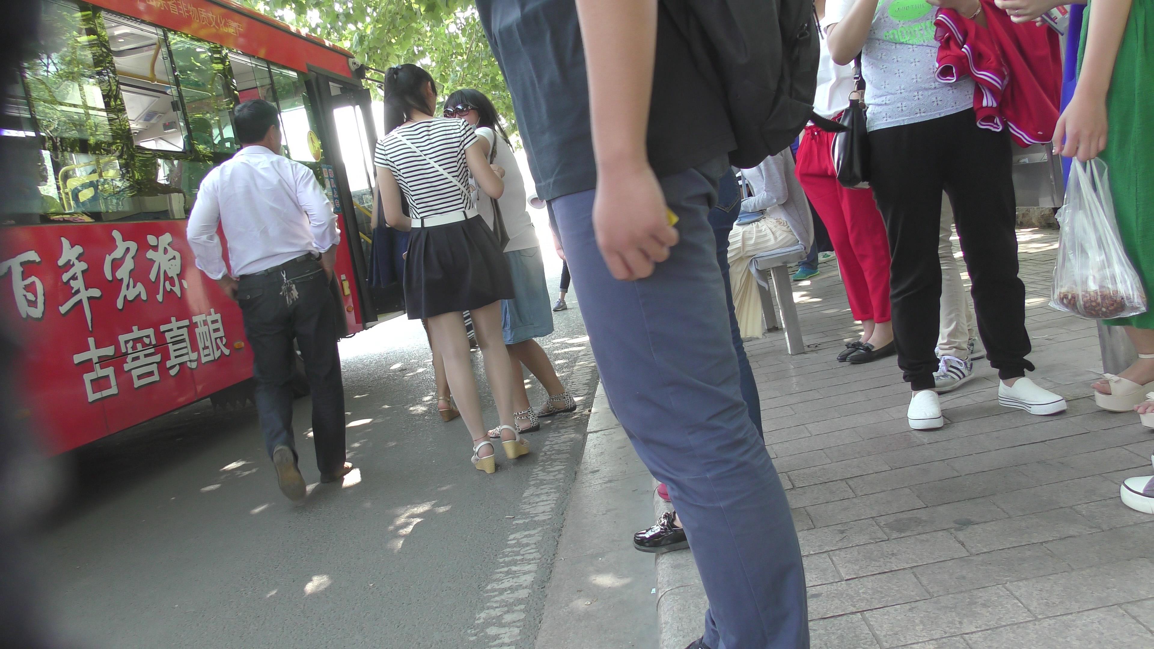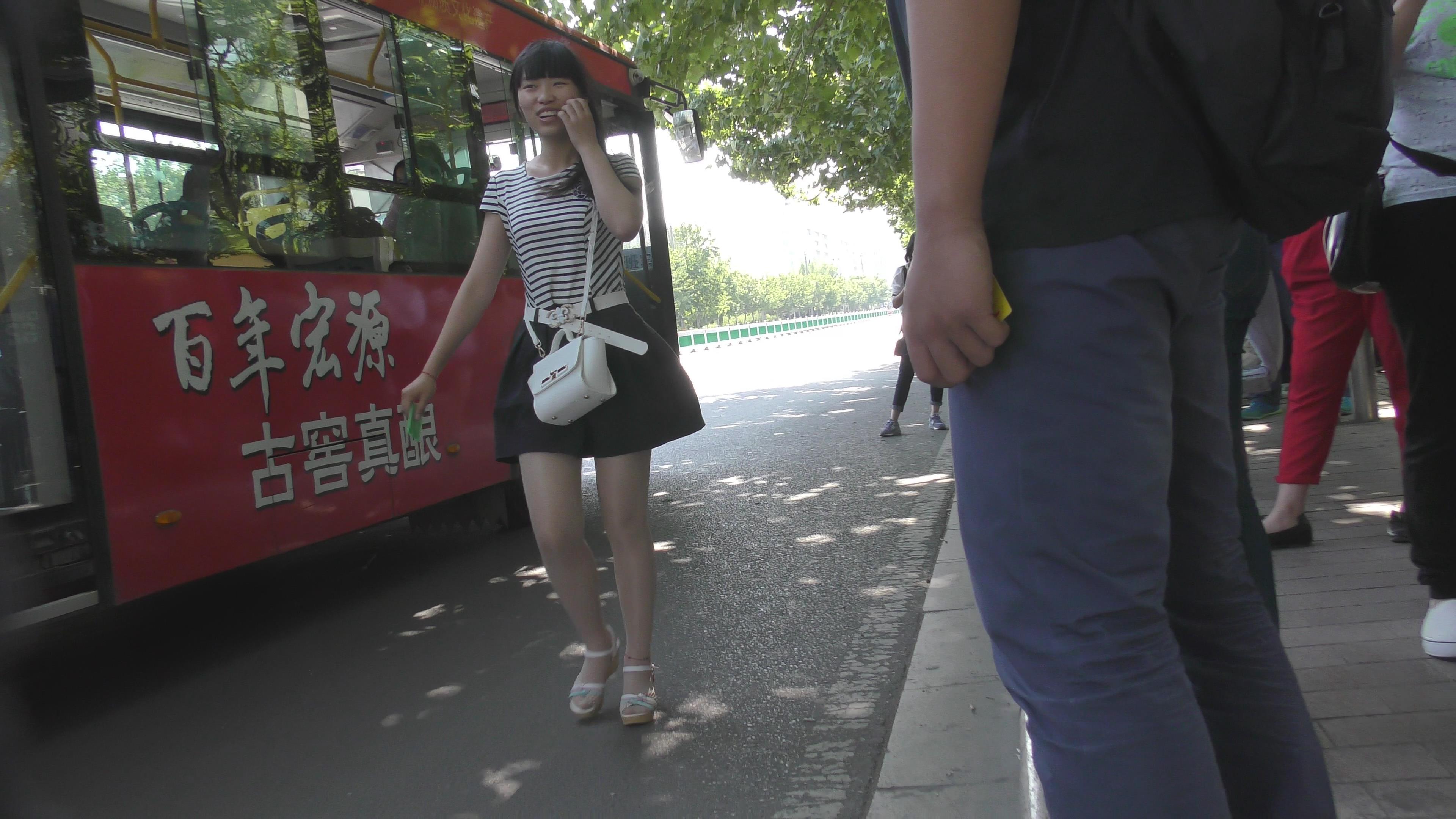4k-等公交的肉丝袜城高跟凉鞋甜美女孩 编号6622