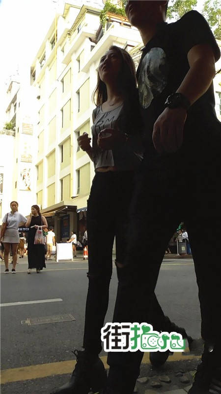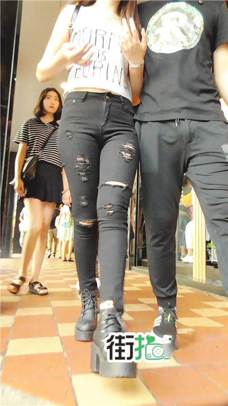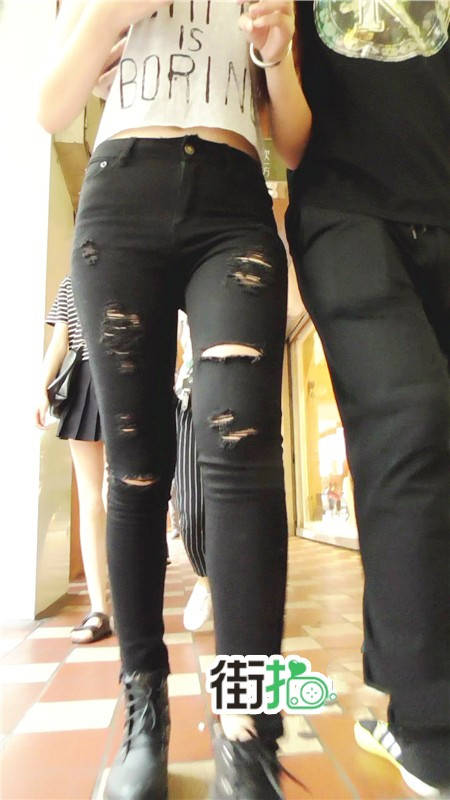 【编号740】街拍时尚紧身破洞黑色牛仔裤MM