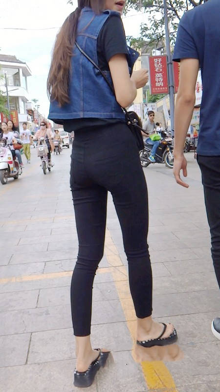 【编号800】街拍12分钟黑色紧身裤苗条时尚美女