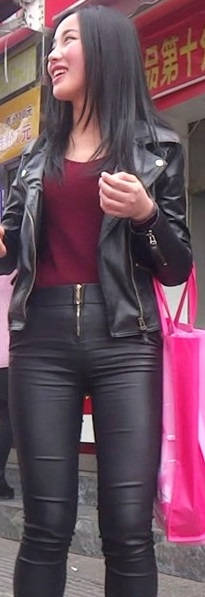 【编号808】街拍面色红润的皮裤少妇