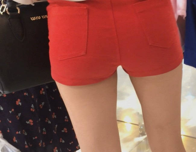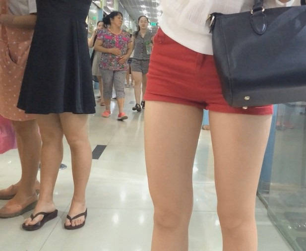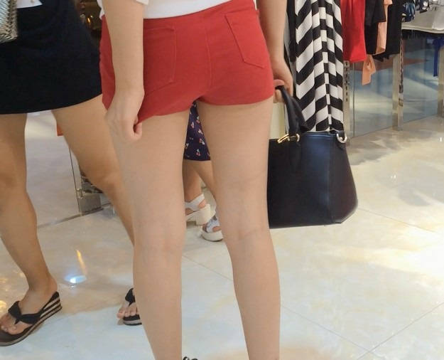 【编号853】街拍20分钟红色短裤长腿翘臀温柔MM