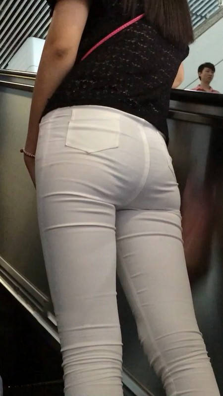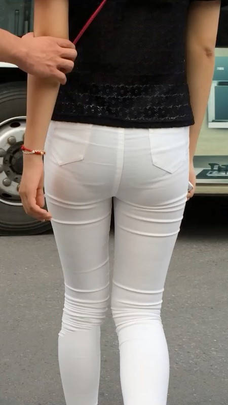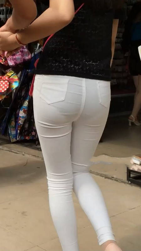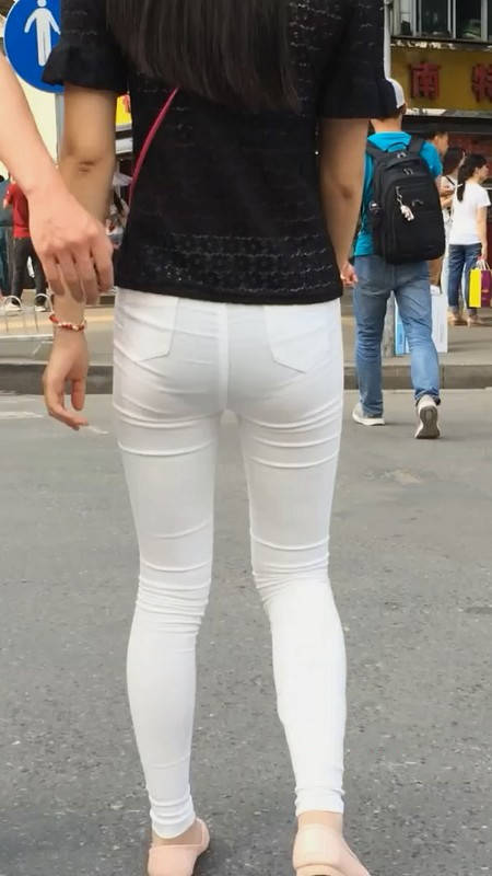 【编号865】街拍苗条白裤扭动