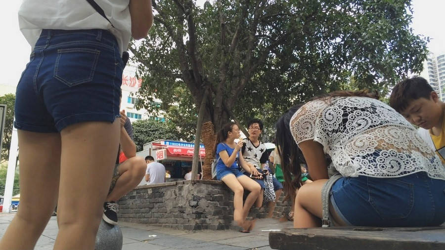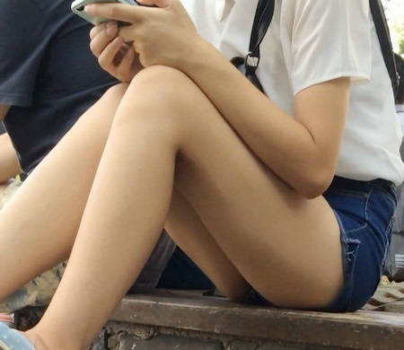 【编号886】街拍长腿热裤青春小美女