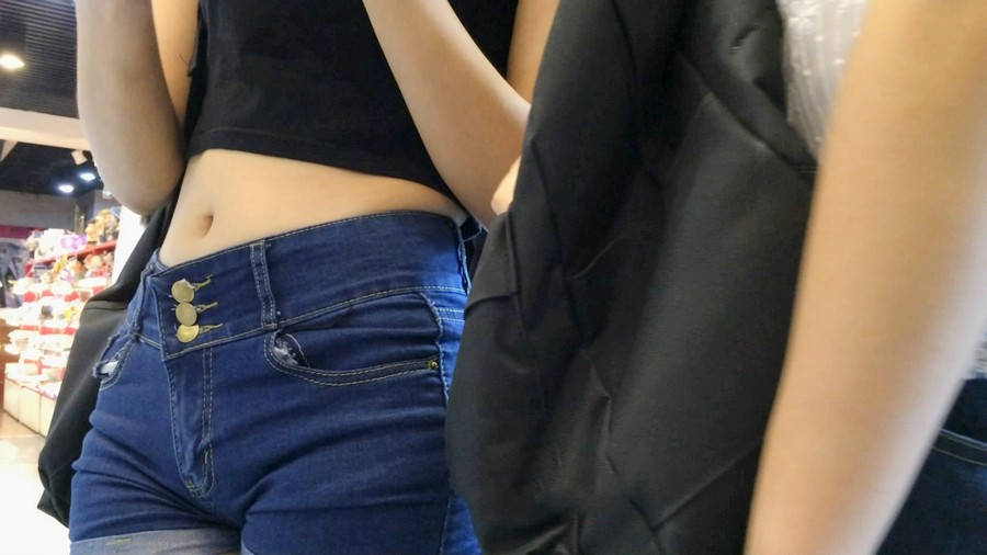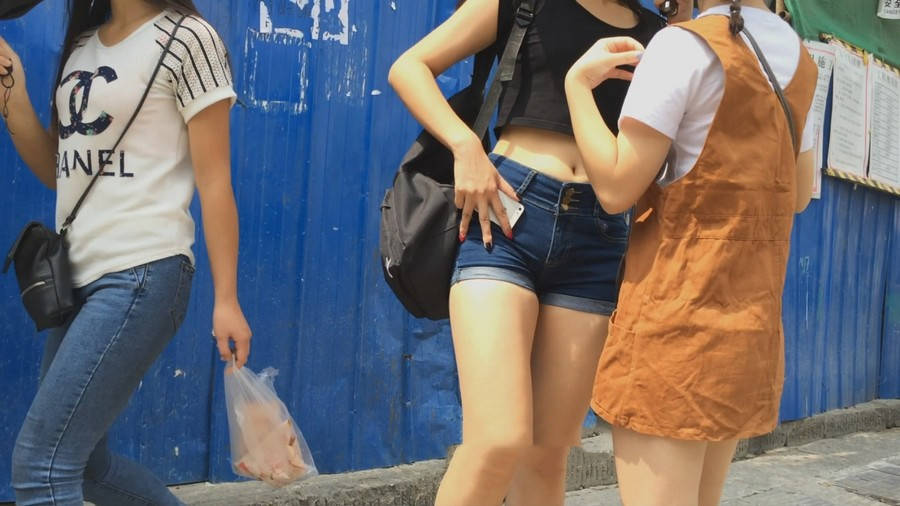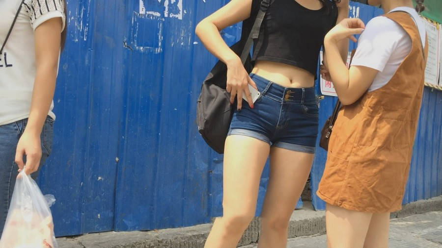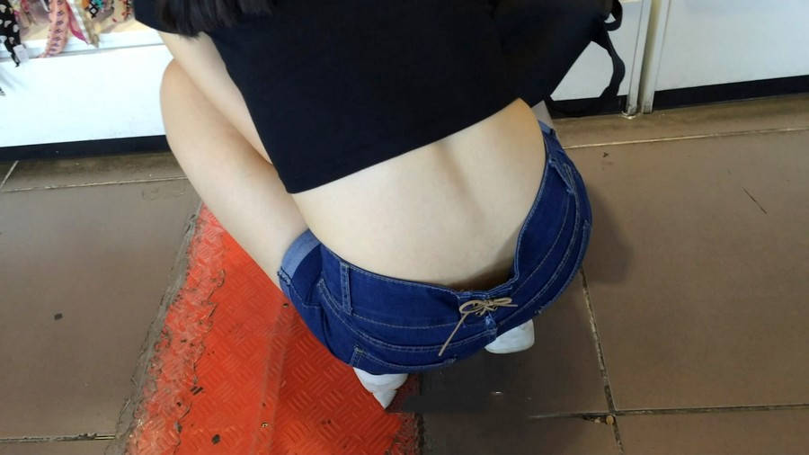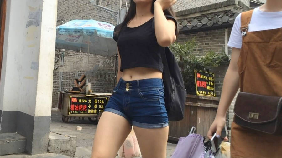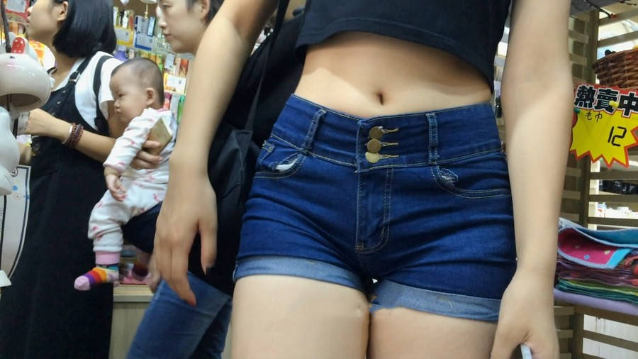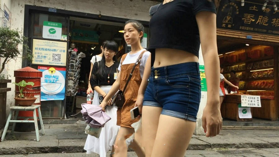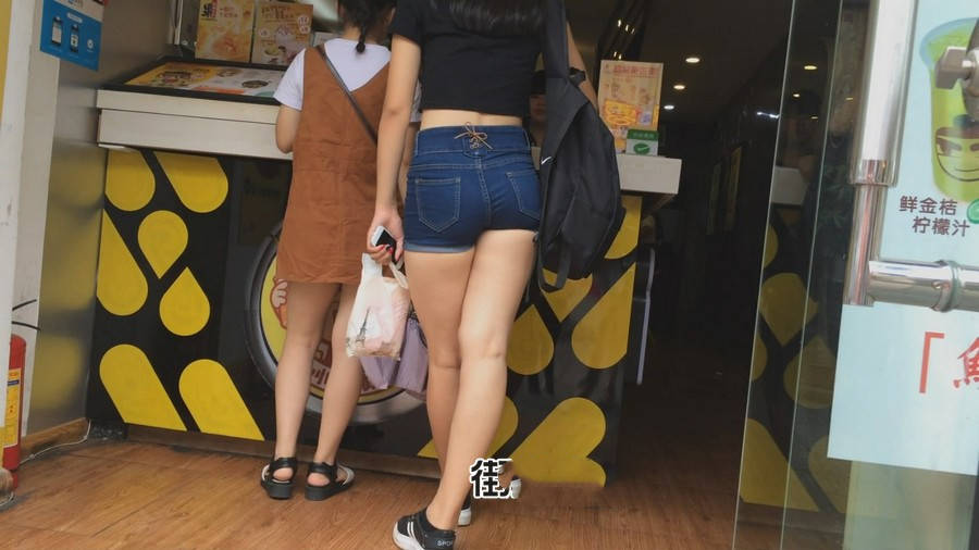【编号899】街拍牛仔短裤学生妹双腿夹得好紧