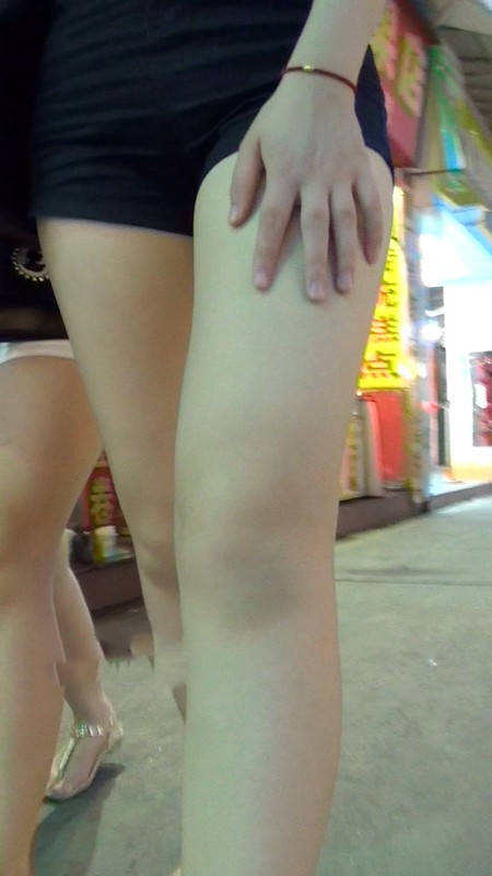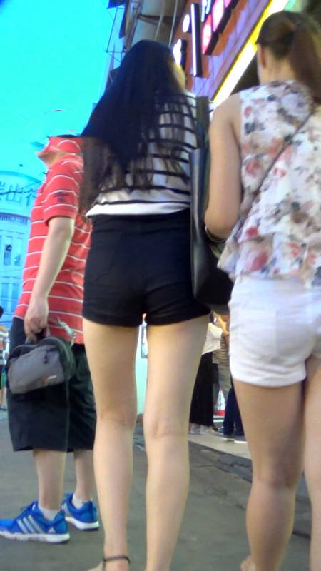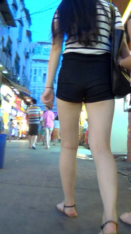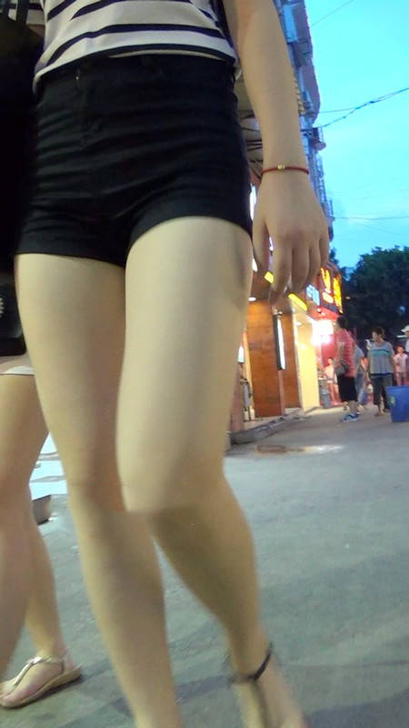 【编号987】街拍黑热裤美腿长发美女