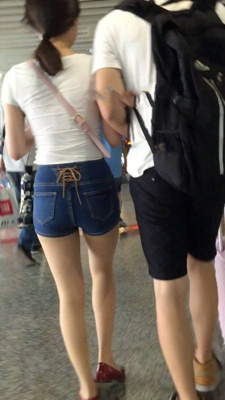 【编号1012】街拍地铁站的牛仔热裤皮肤白皙美女