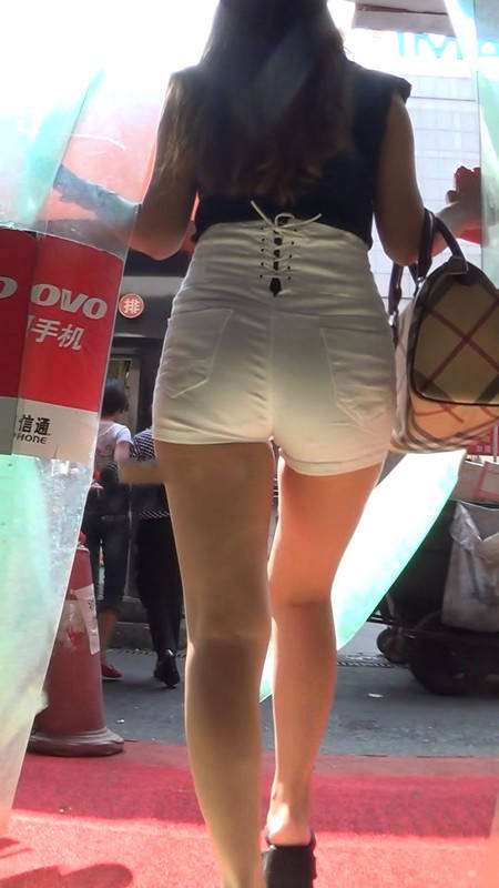 【编号1039】街拍白色高腰热裤美女勒出内痕