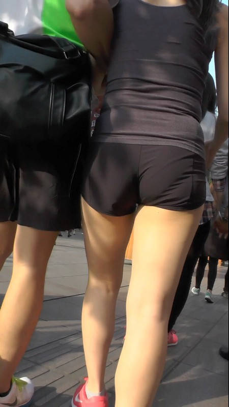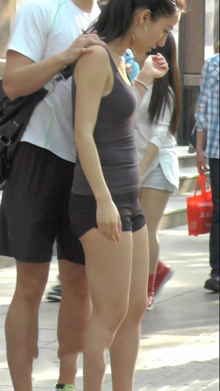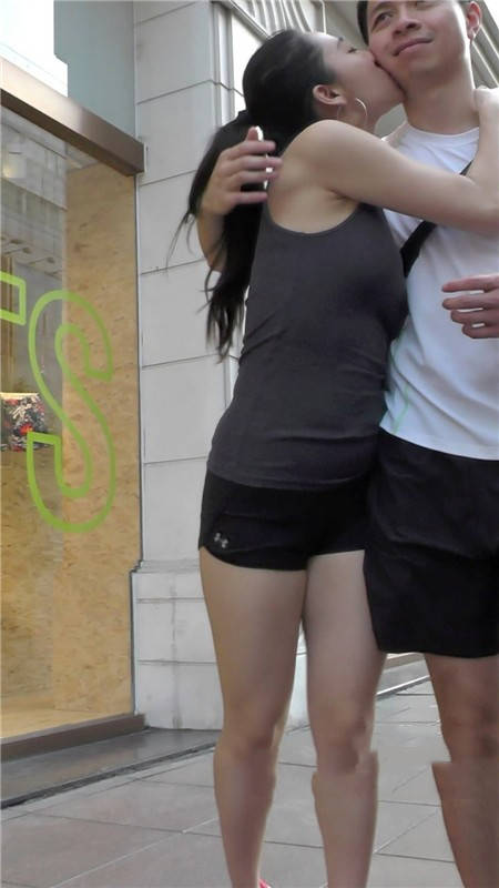 【编号1102】街拍紧身小短裤美女当街轻吻男友