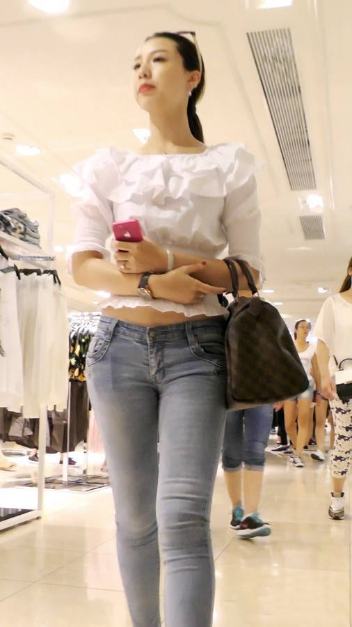 【编号559】细腰丰臀紧身牛仔高颜值女神