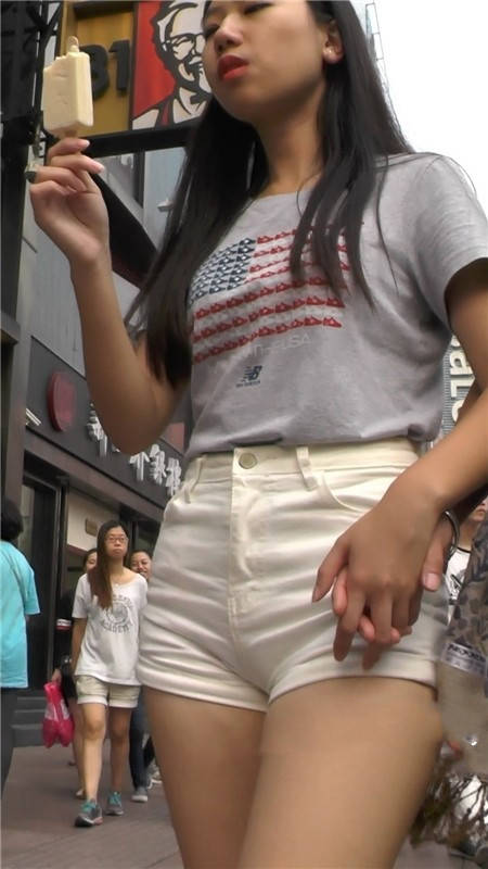 【编号1164】街拍白短裤小妹大腿被蚊子叮了