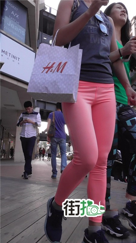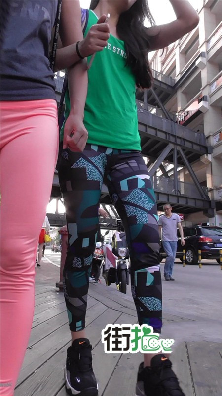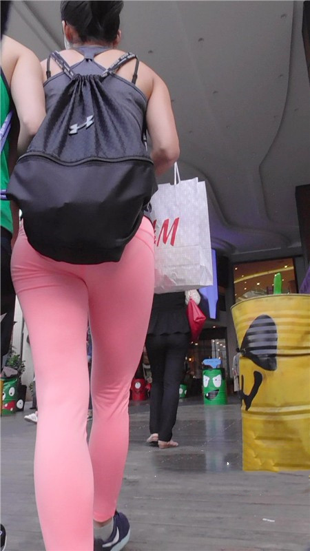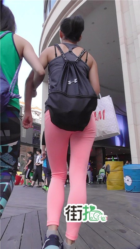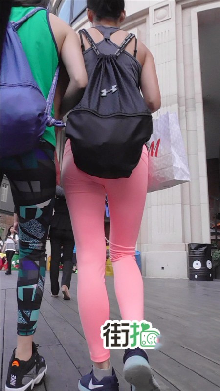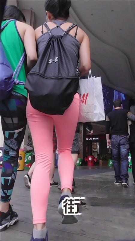 【编号732】街拍又薄又透的红色瑜伽裤美眉