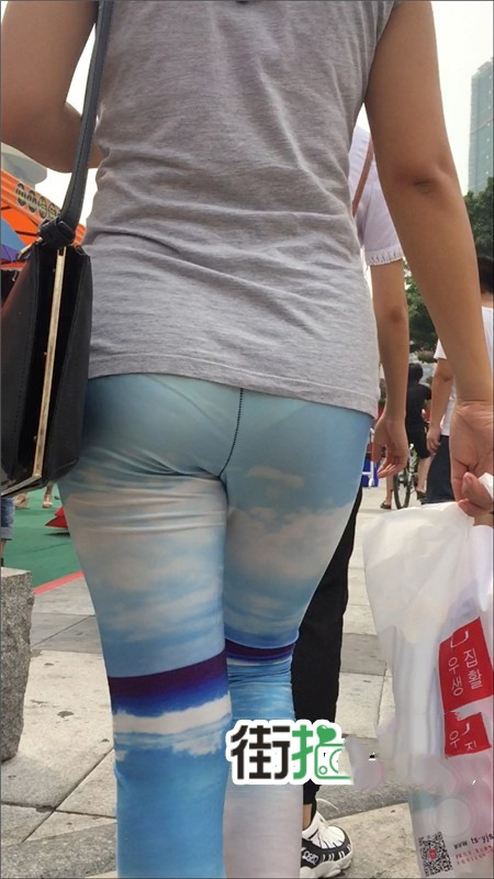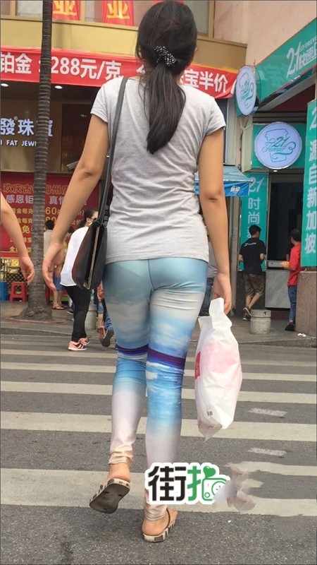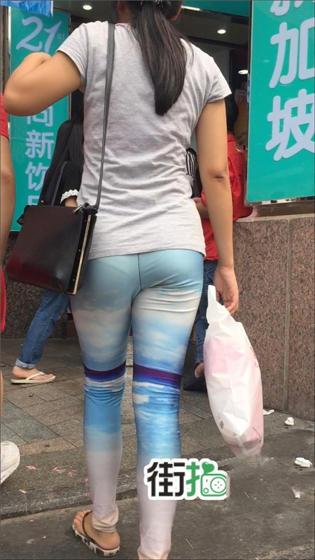 【编号778】街拍罕见色调的透明紧身裤少妇