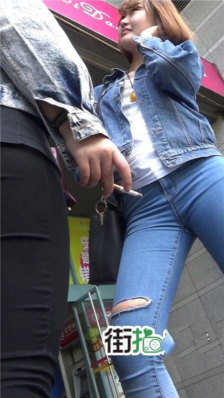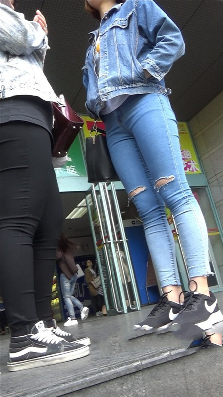 【编号787】街拍商场门口的蓝色牛仔裤妹妹
