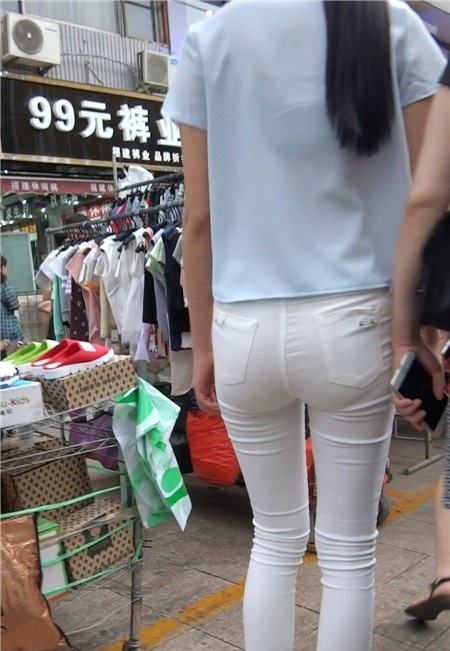 【编号804】街拍10分钟薄透紧身白裤的圆臀美眉
