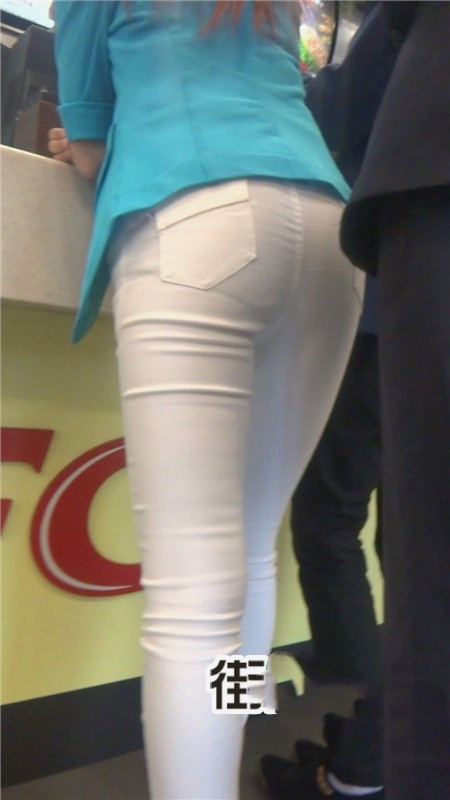 【编号811】街拍KFC里排队的紧身白裤MM