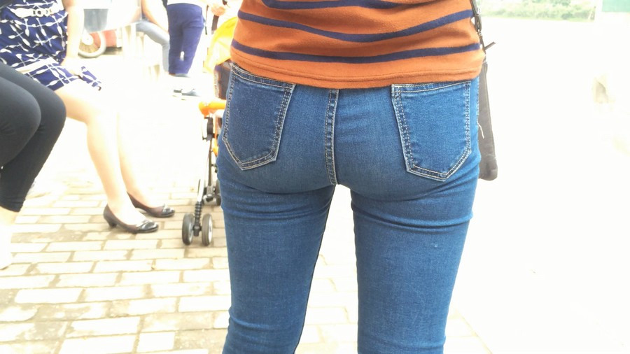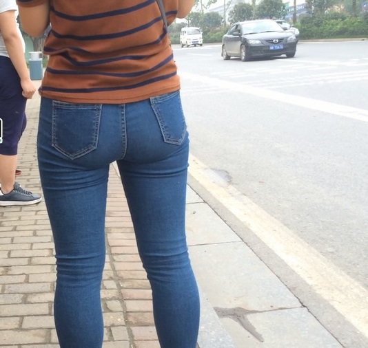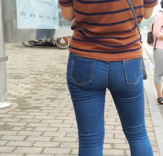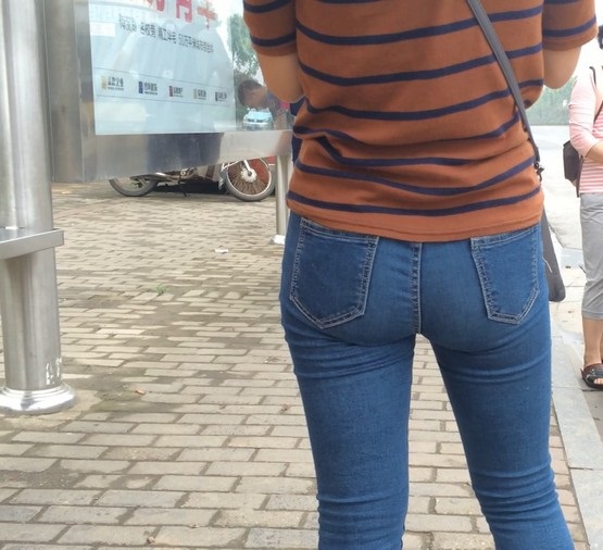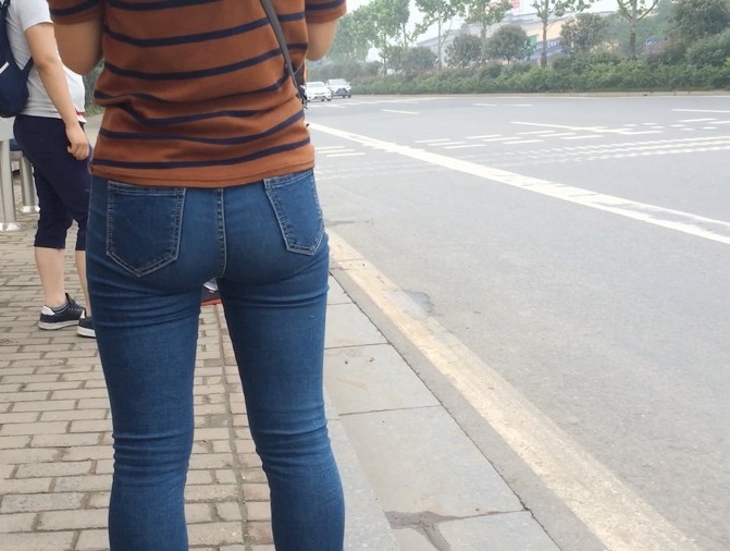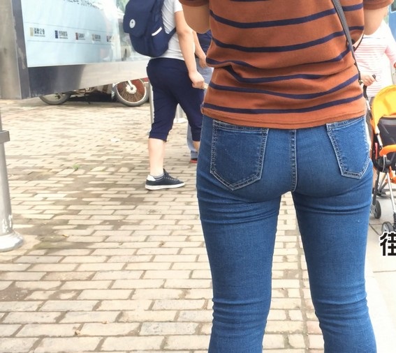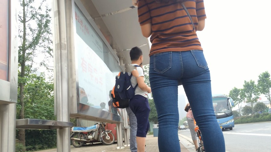 【编号860】街拍紧身蓝牛少妇等公交