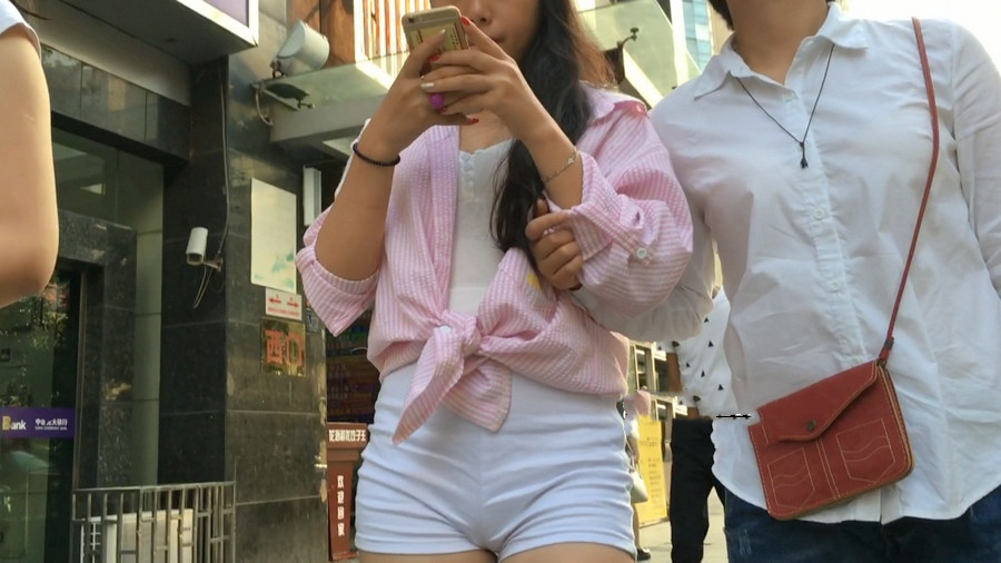 【编号895】街拍白色紧身热裤前三角有缝