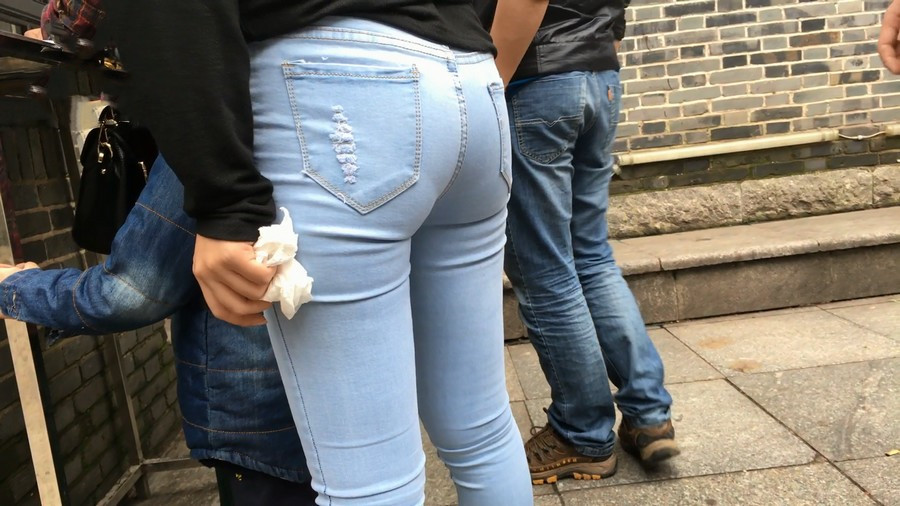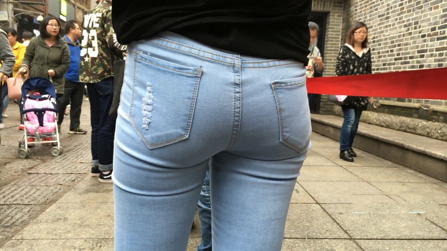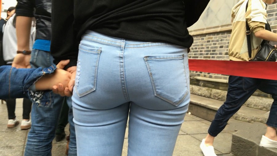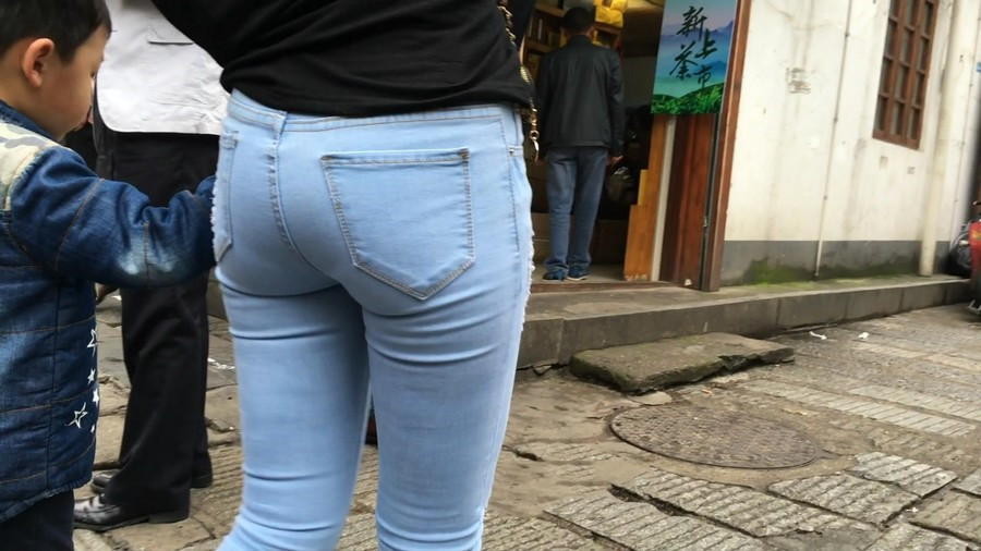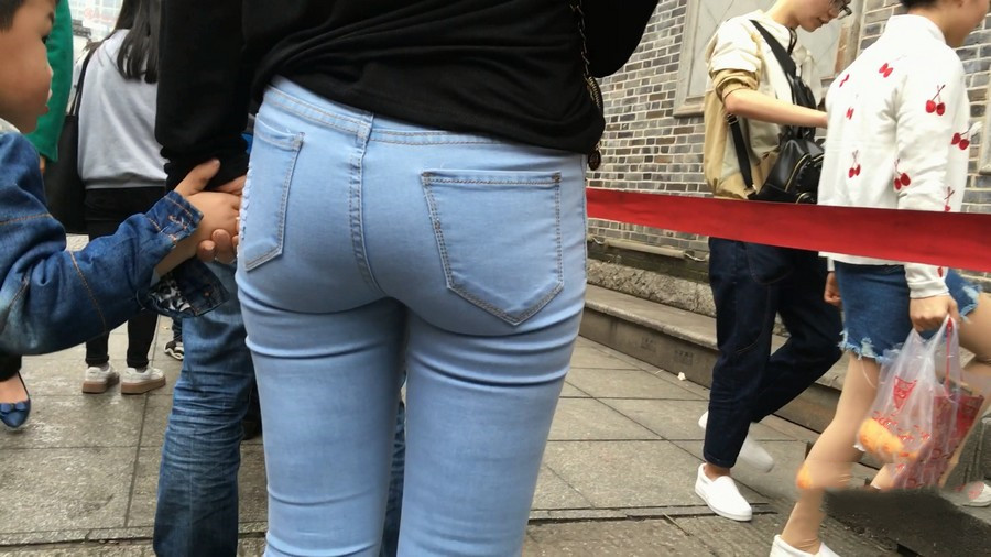 【编号910】街拍蓝牛少妇带小孩逛街