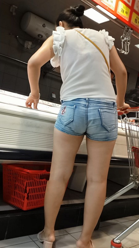 【编号918】街拍超市里的大屁股牛仔热裤少妇