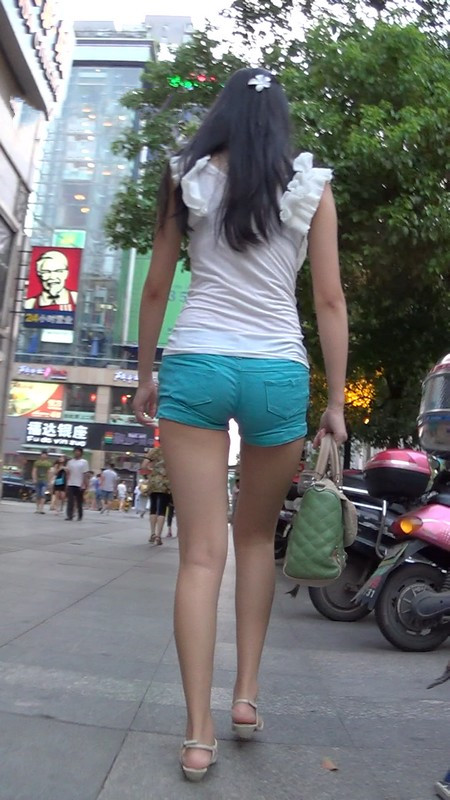 【编号989】街拍淡蓝色热裤少女好身材