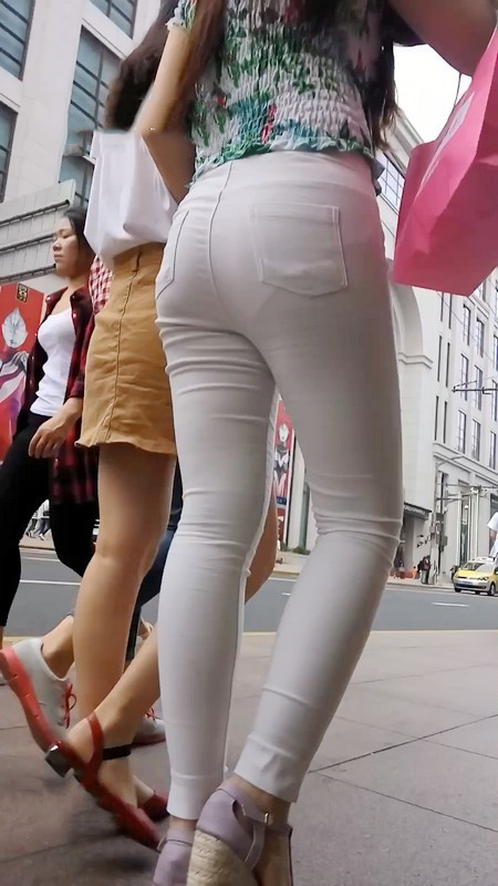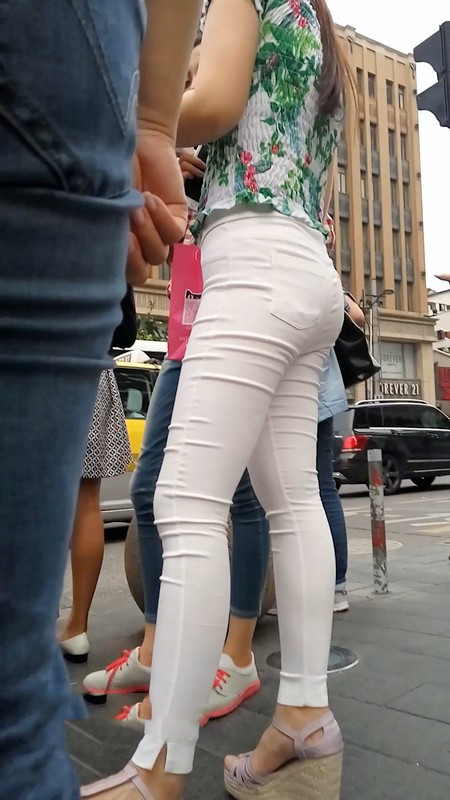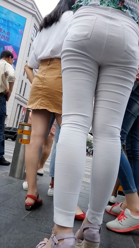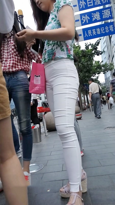 【编号1025】街拍白色紧身裤美女
