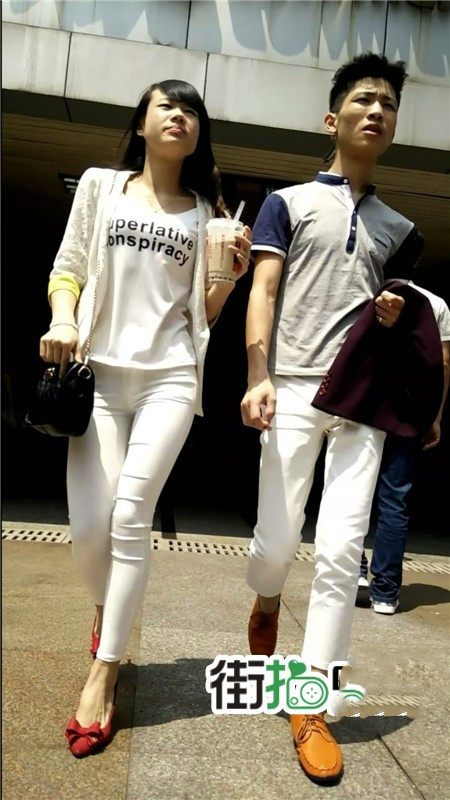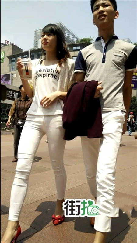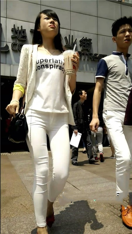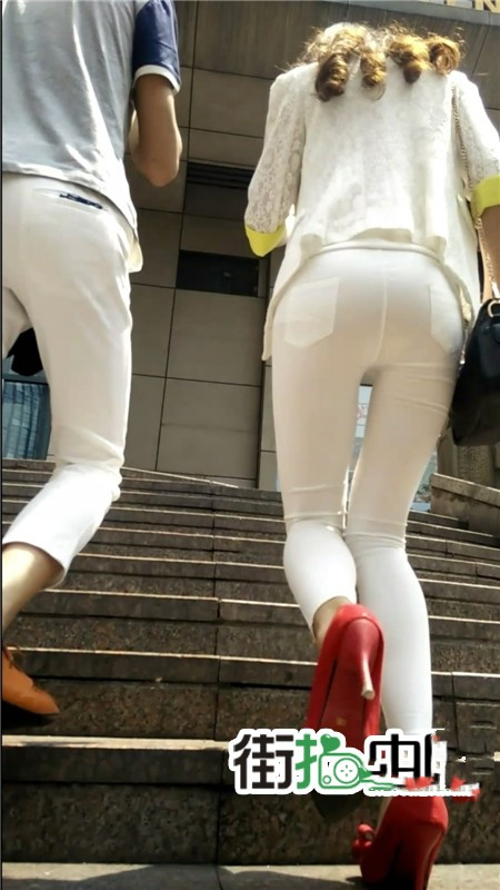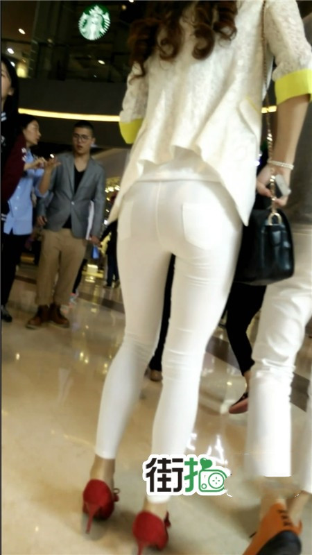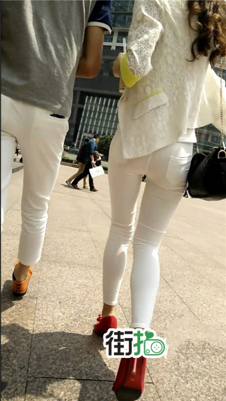 【编号1063】街拍白裤紧身圆臀包的紧