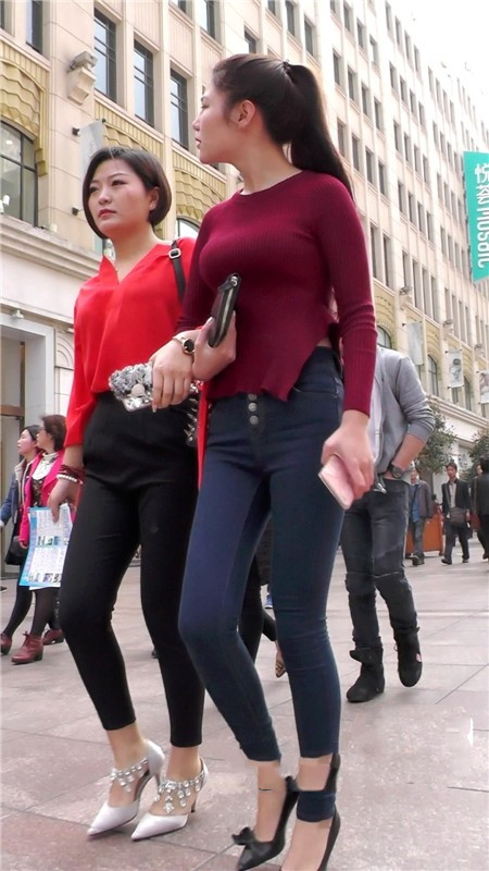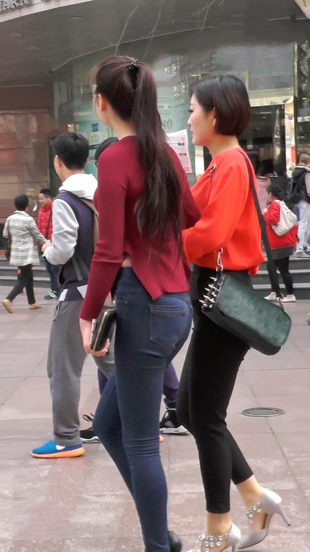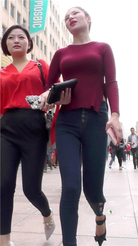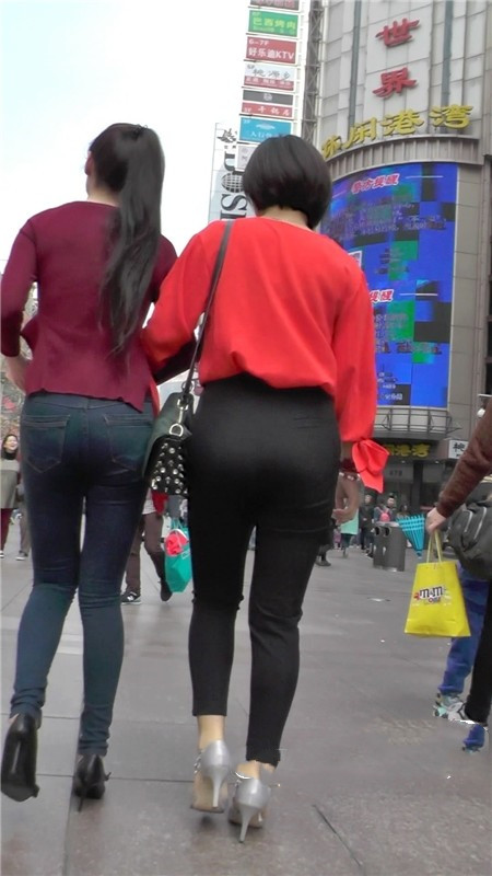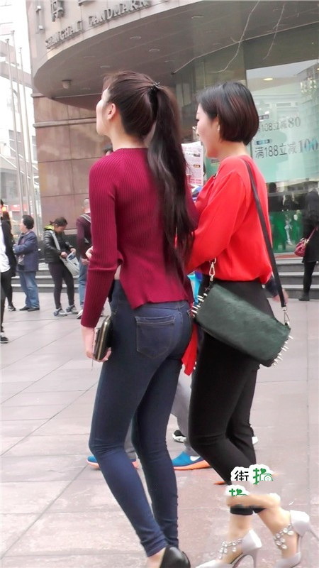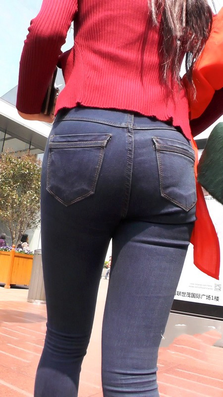 【编号1085】街拍紧身牛仔裤少妇前凸后翘