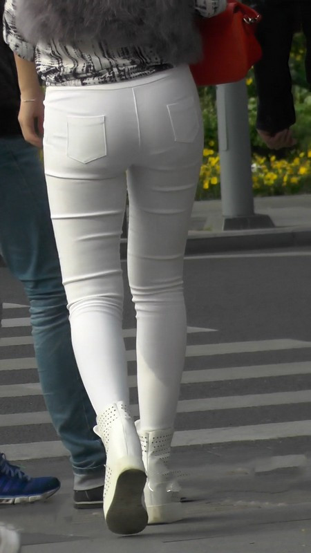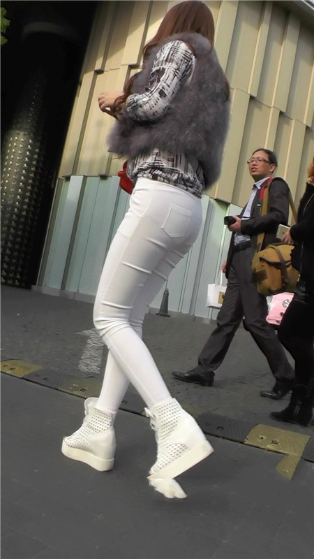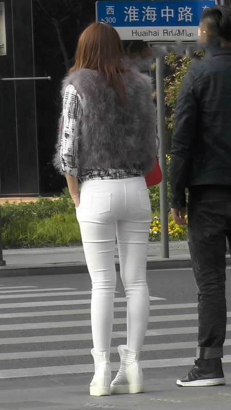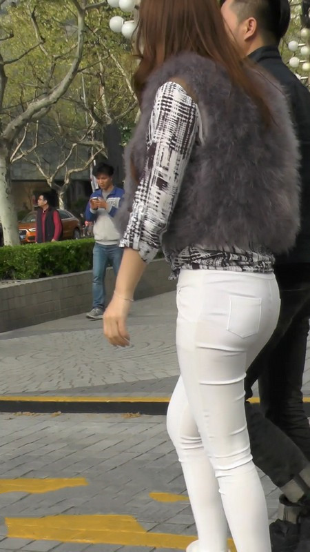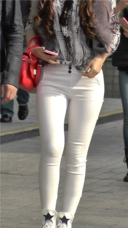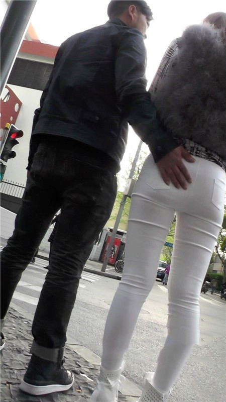 【编号1086】街拍白色紧身裤MM男友的手放哪里