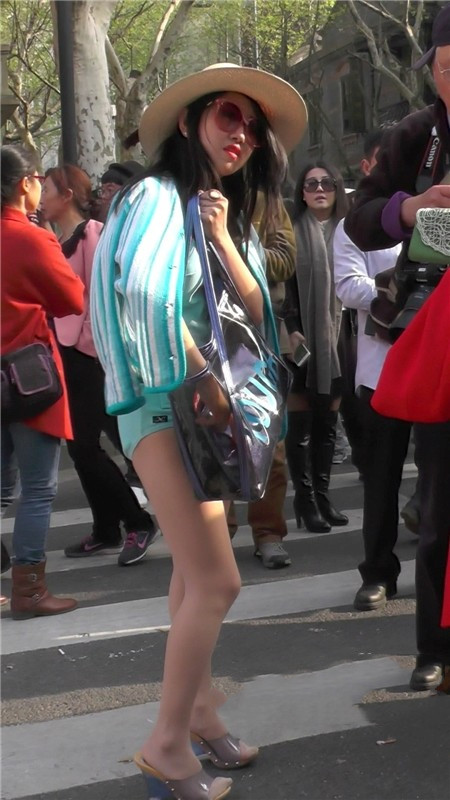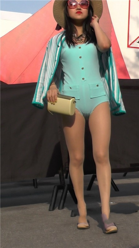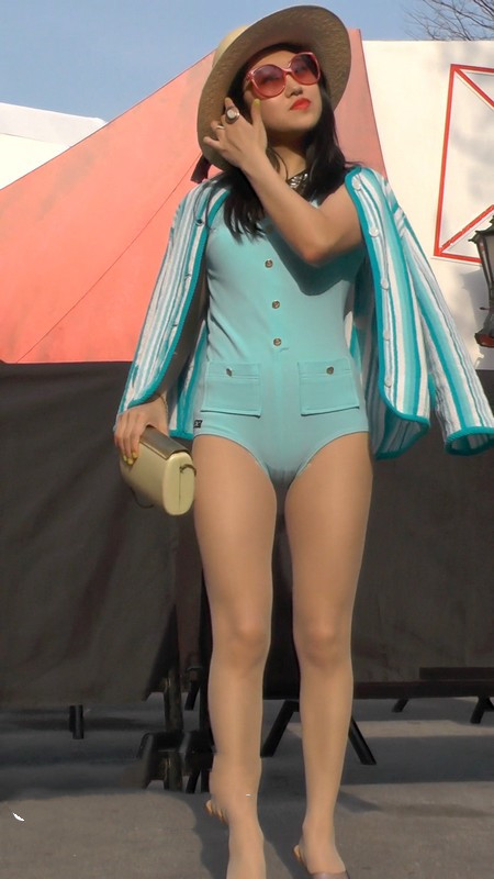 【编号1094】街拍超紧身连体衣女模特街边摆拍