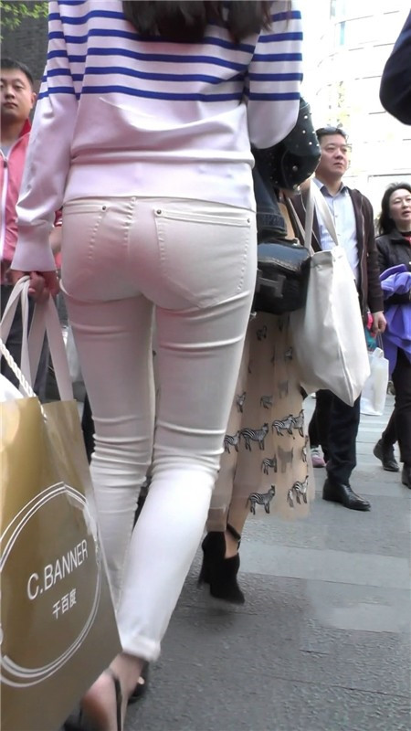 【编号1099】街拍苗条白裤紧臀美女逛街