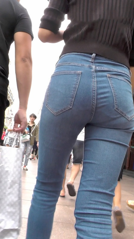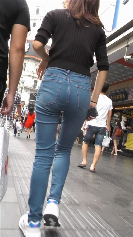 【编号1145】街拍紧身牛仔裤少妇商场试衣