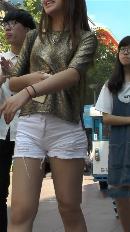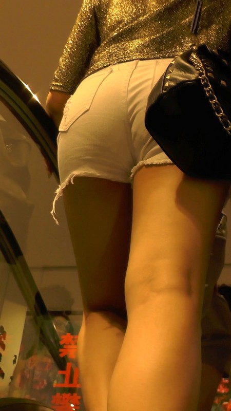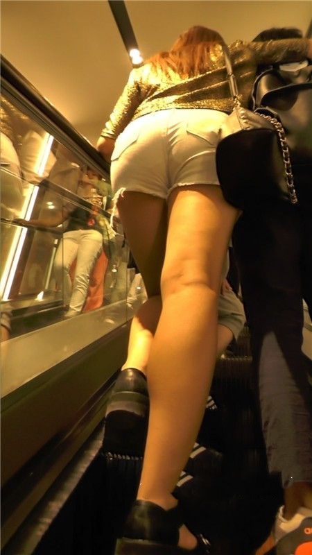 【编号1149】街拍白色紧身热裤丰满小妹上扶梯