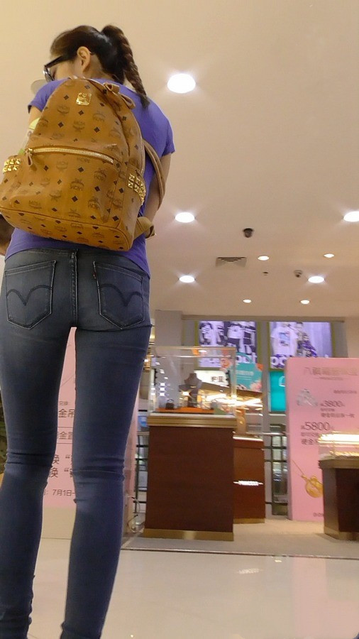 【编号560】尾行蓝牛苗条女子一路上扶梯