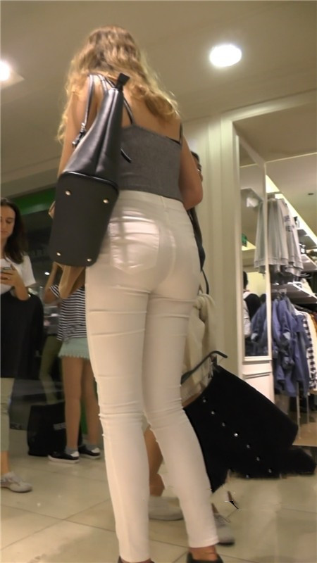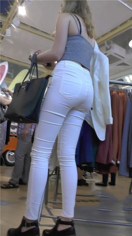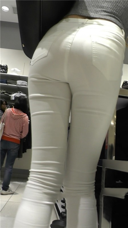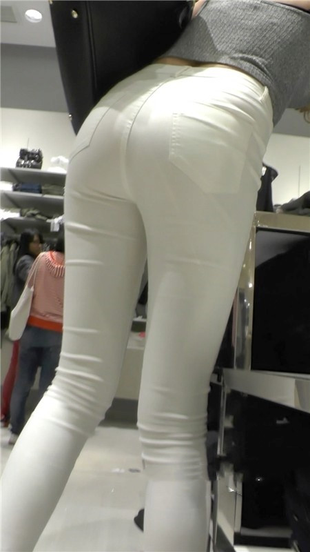 【编号1173】街拍紧身白裤极品长腿翘臀美女