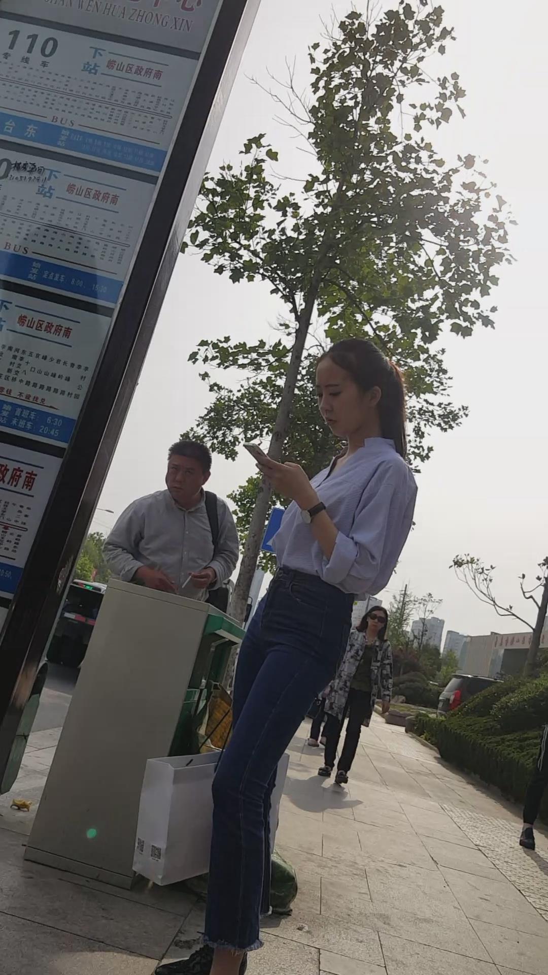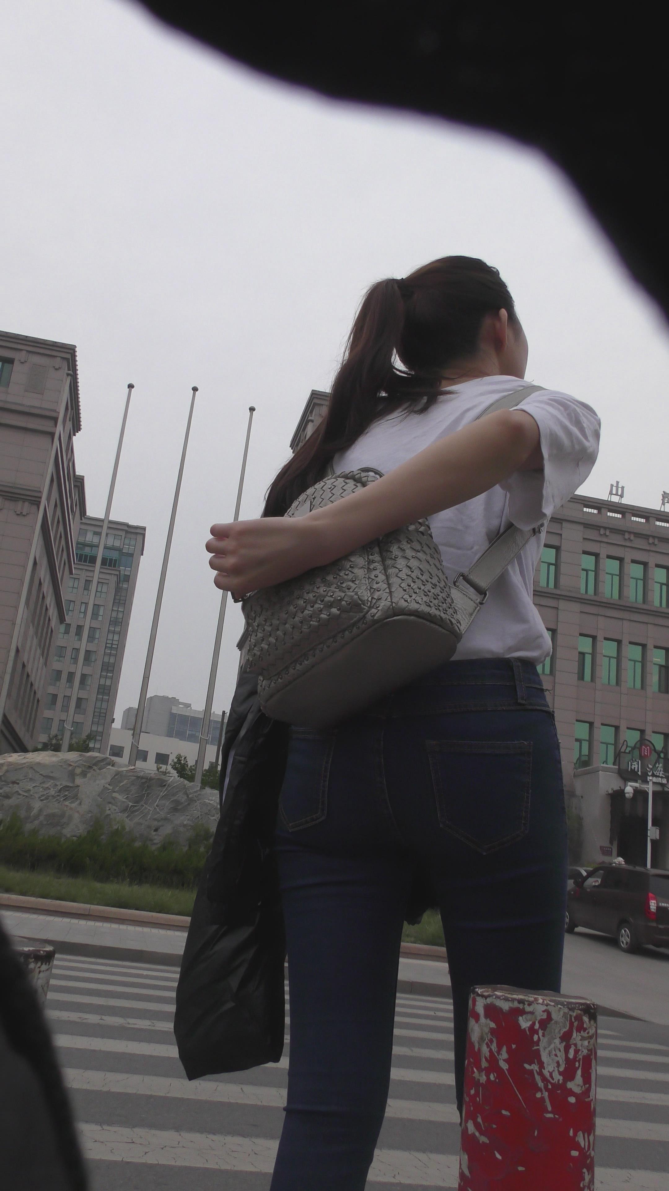 4k-紧身蓝牛清秀高颜值街拍美女 编号3118